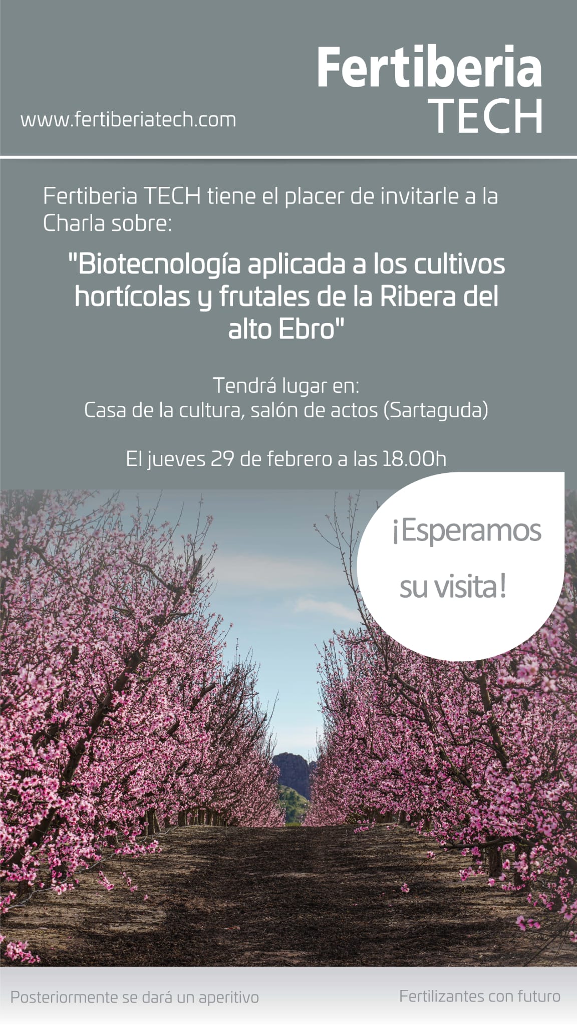 Charla Fertiberia, tiene el placer de invitarle a la charla sobre biotecnología aplicada a los cultivos hortícolas y frutales de la Rivera.