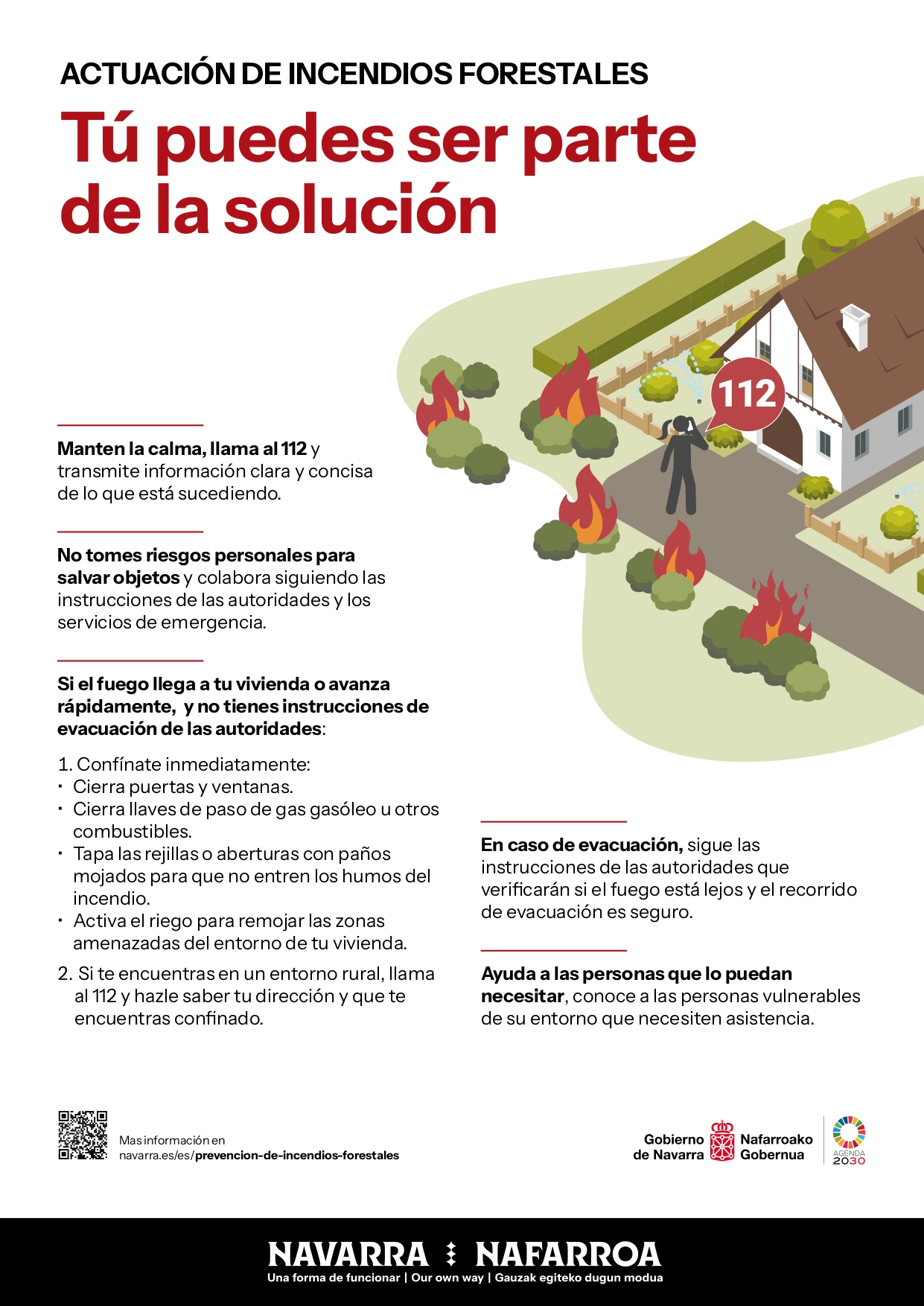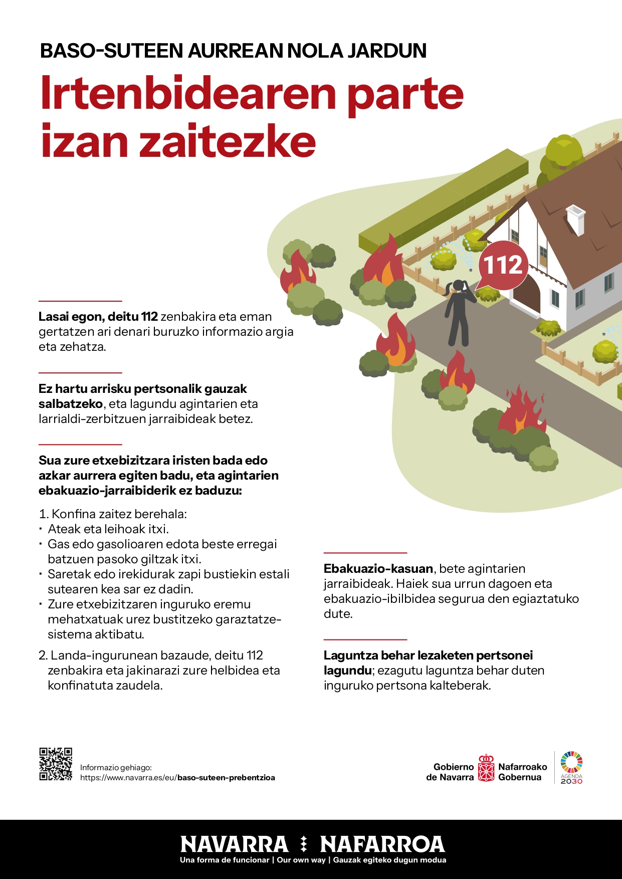 Baso-sute baten aurrean, lasai egon, deitu 112ra eta jarraitu agintarien jarraibideak zure eta ingurukoen segurtasuna bermatzeko