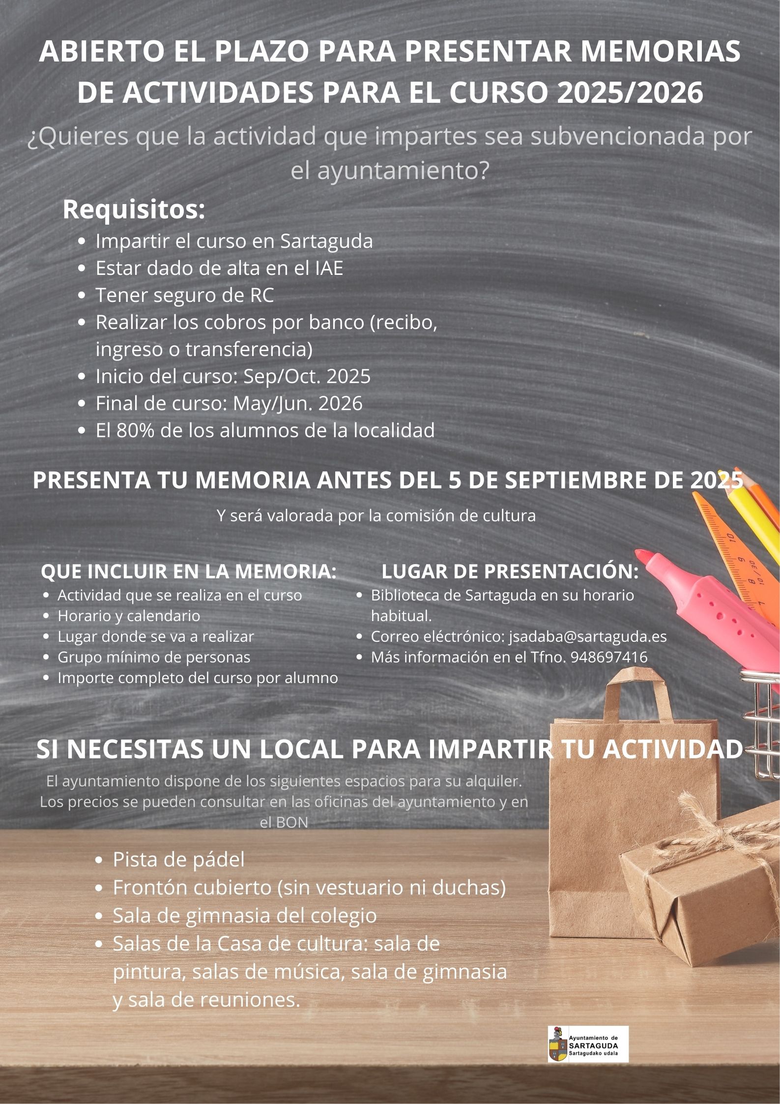 ABIERTO EL PLAZO PARA PRESENTAR MEMORIAS DE ACTIVIDADES PARA EL CURSO 2025/2026, NO TE QUEDES SIN TU PLAZA.
