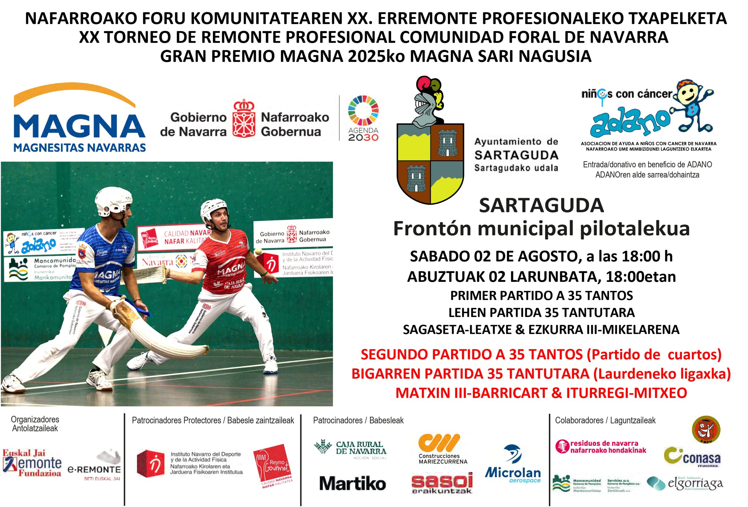 Disfruta del XX Torneo de Remonte Profesional en Sartaguda el 2 de agosto de 2025 a las 18:00 h, con entrada solidaria a favor de ADANO.