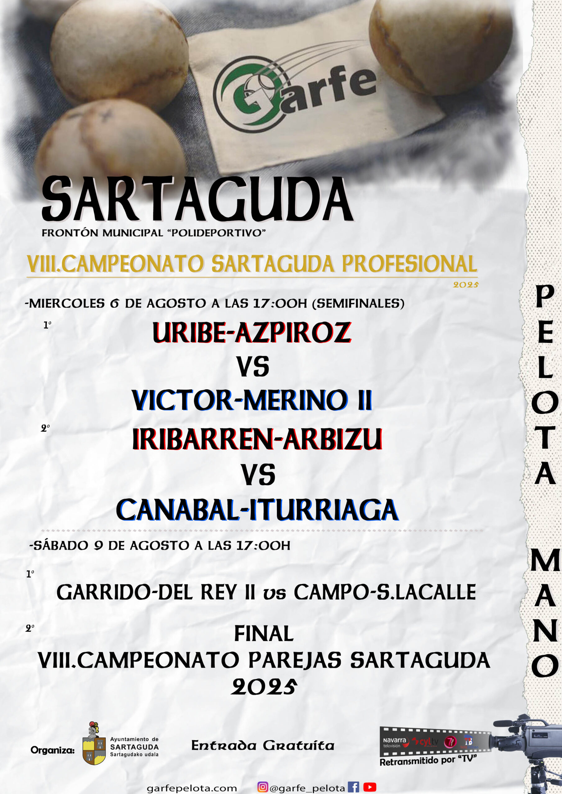 Disfruta del mejor frontón en Sartaguda: semifinales el 6 y final el 9 de agosto. Entrada gratuita. ¡Vive la emoción de la pelota!