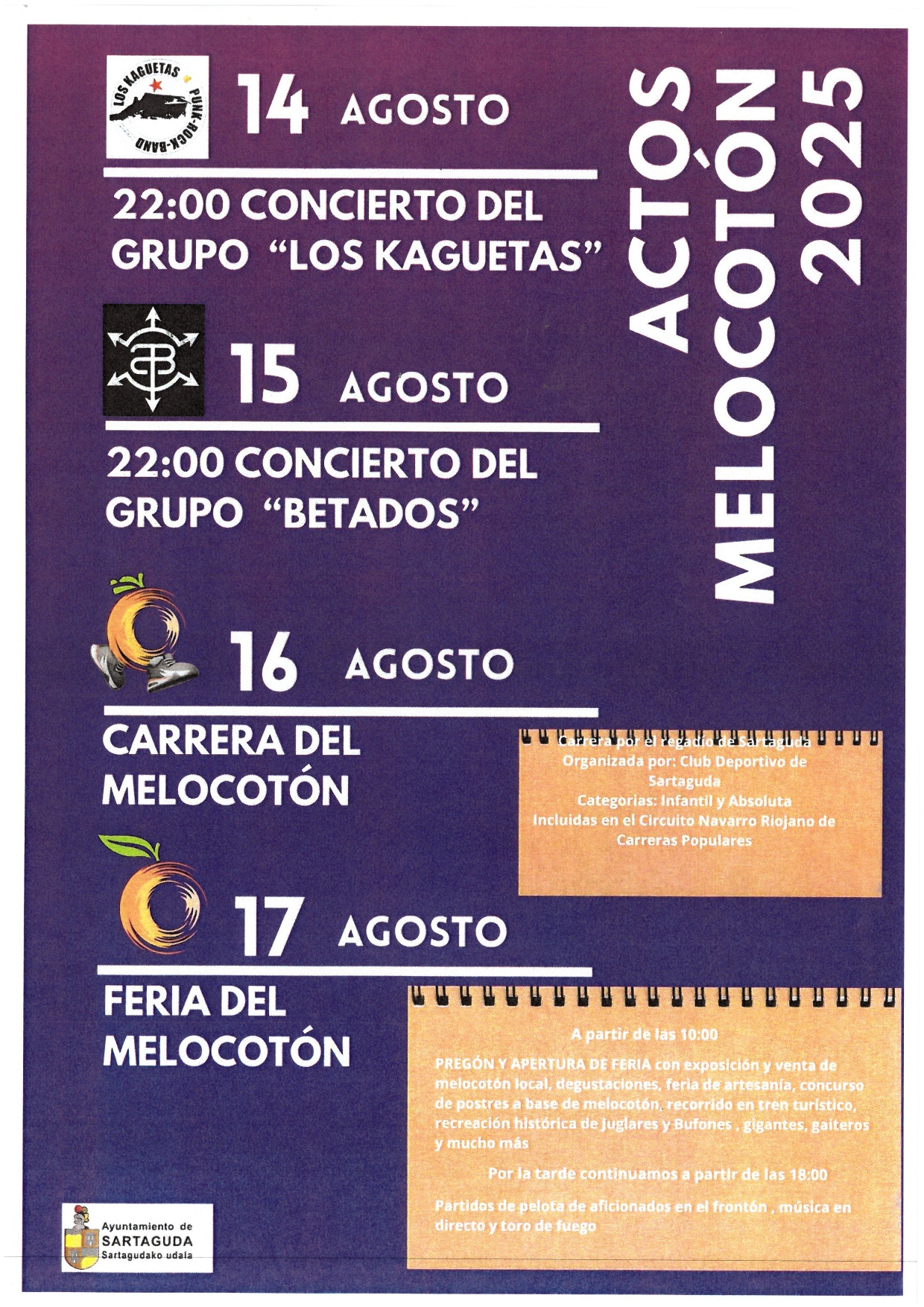🍑 Del 14 al 17 de agosto, vive los Actos del Melocotón 2025 en Sartaguda: conciertos, carrera popular y la gran feria con degustaciones…