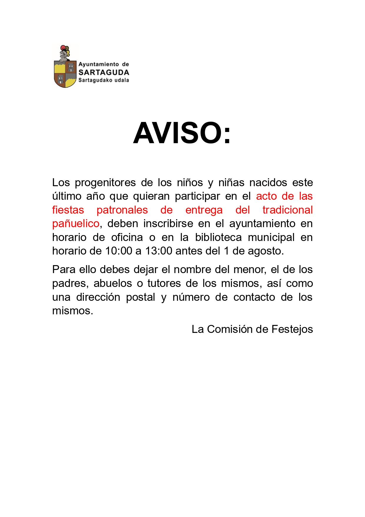 ¡Apunta a tu peque al acto de entrega del pañuelico! Para nacidos en el último año. Inscripción abierta hasta el 1 de agosto.