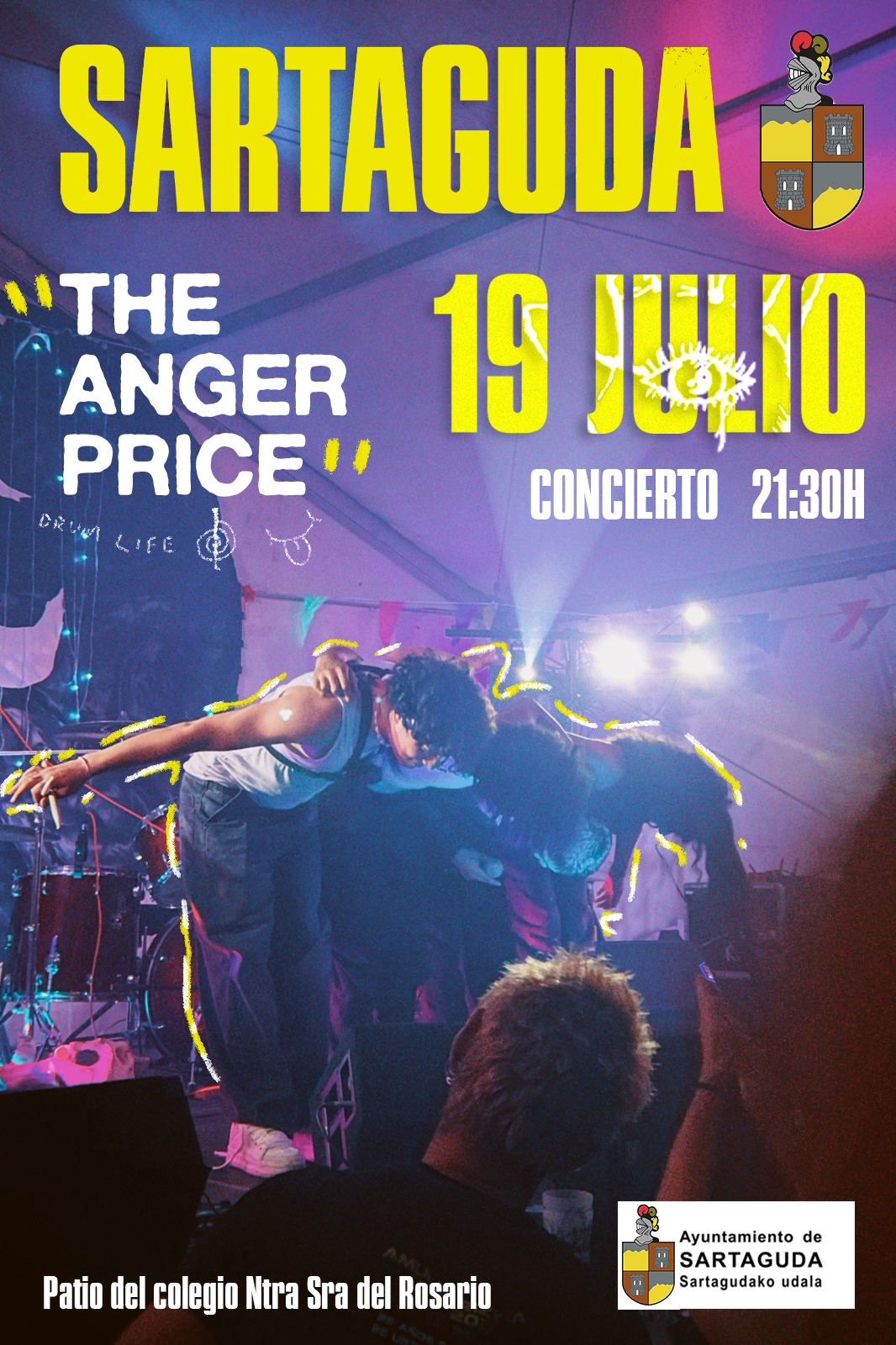 ¡Concierto en Sartaguda! 🎸 The Anger Price en directo el 19 de julio a las 21:30h en el patio del colegio Ntra. Sra. del Rosario. ¡No faltes!