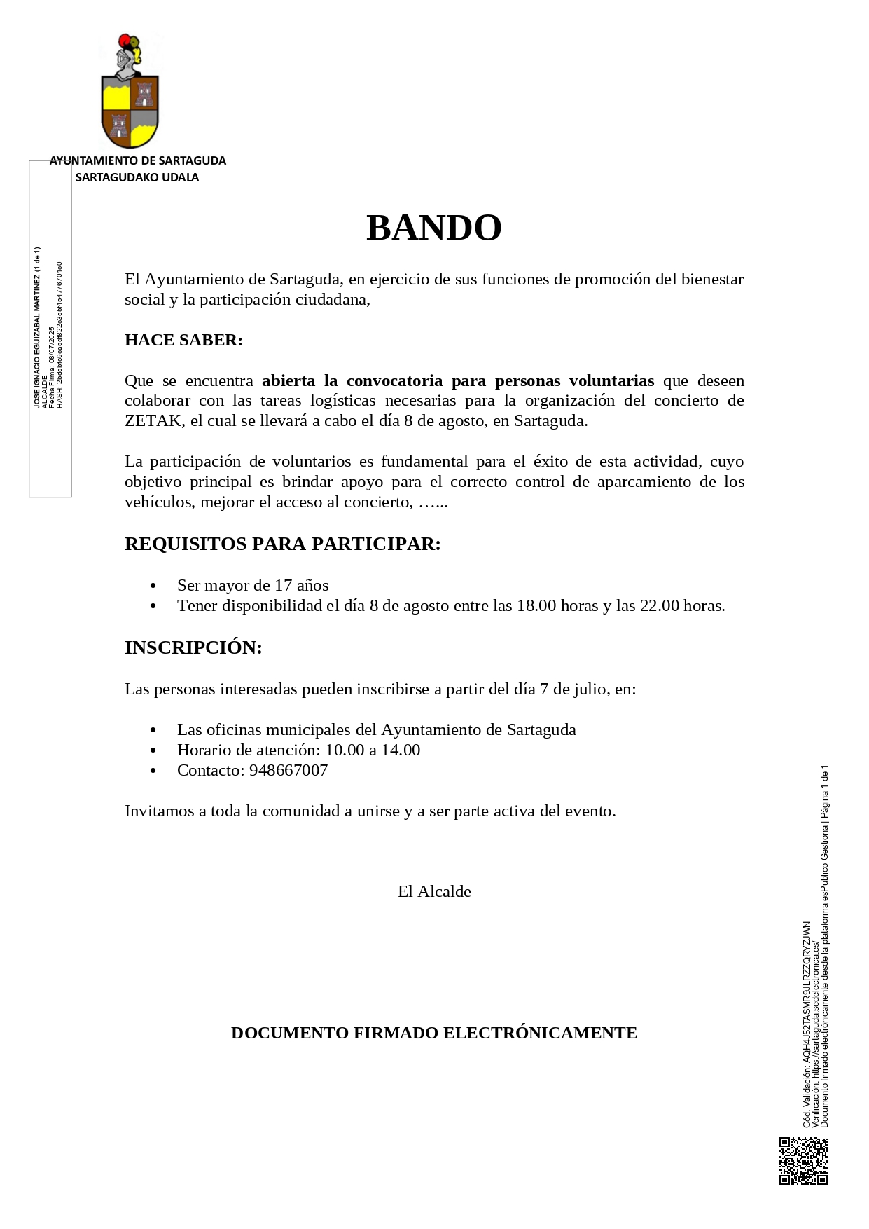 🎶 ¿Quieres colaborar en el concierto de ZETAK en Sartaguda? Buscamos voluntarios para tareas logísticas el 8 de agosto. ¡Inscríbete ya! 💪
