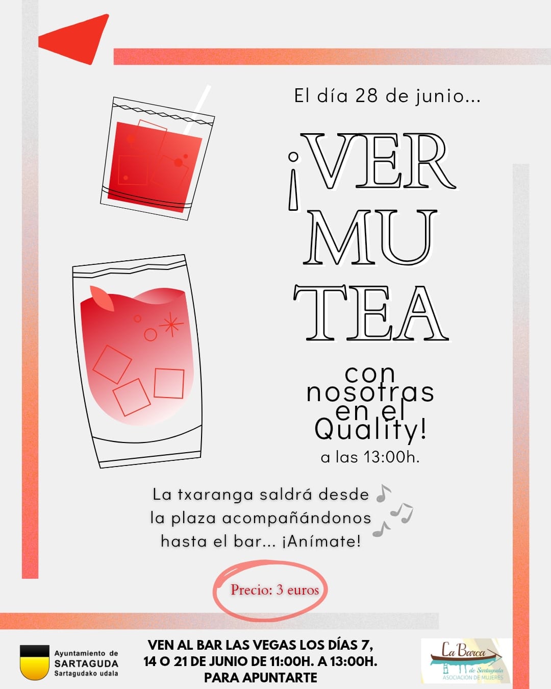 ¡El 28 de junio vente de vermut con nosotras al Quality! Salida con txaranga desde la plaza a las 13:00h. ¡Solo 3 euros!