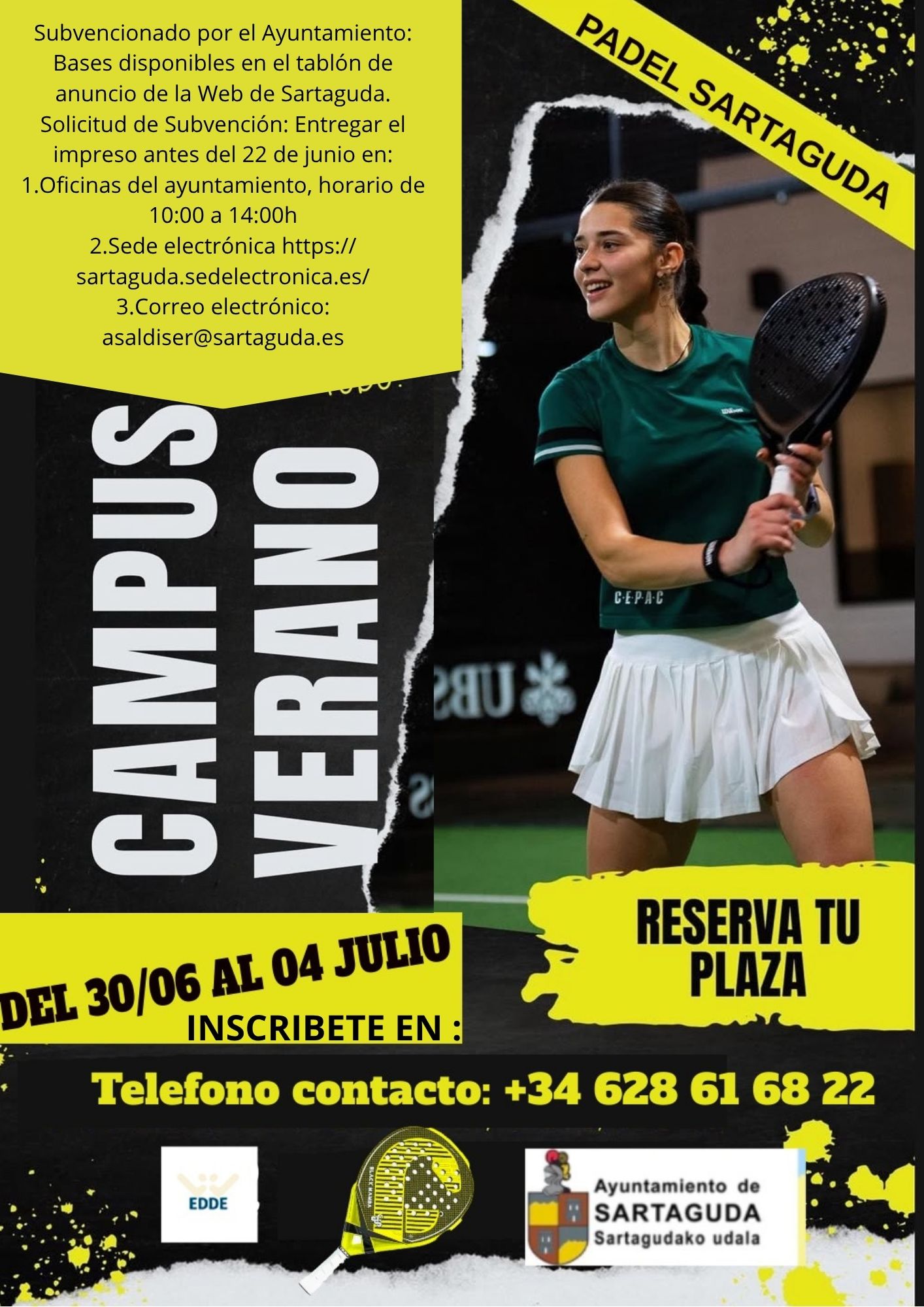 Apúntate al Campus de Verano de Pádel en Sartaguda del 30 de junio al 4 de julio. Diviértete y reserva tu plaza antes del 22 de junio