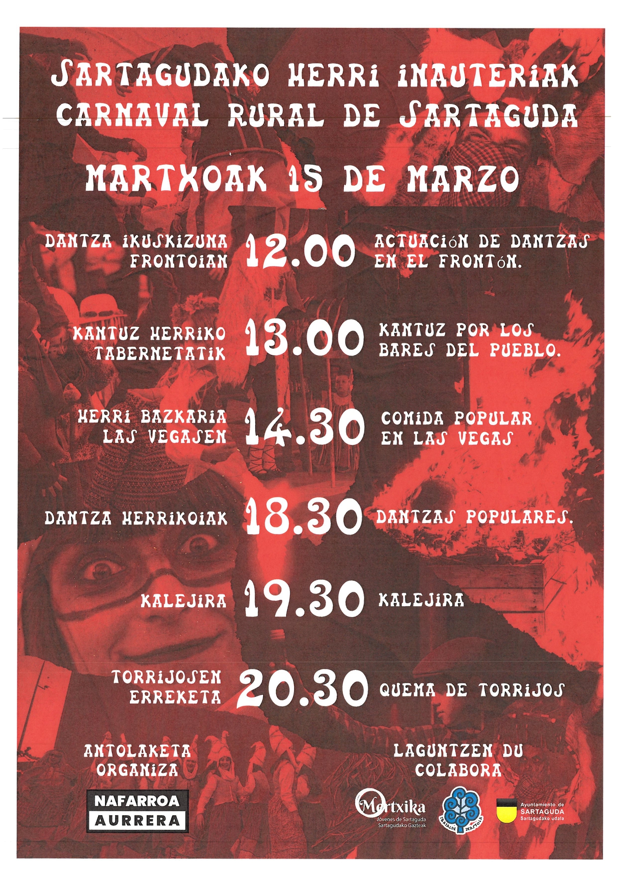 Disfruta del Carnaval Rural de Sartaguda con danzas, kalejira y la tradicional quema de Torrijos. ¡Imperdible!