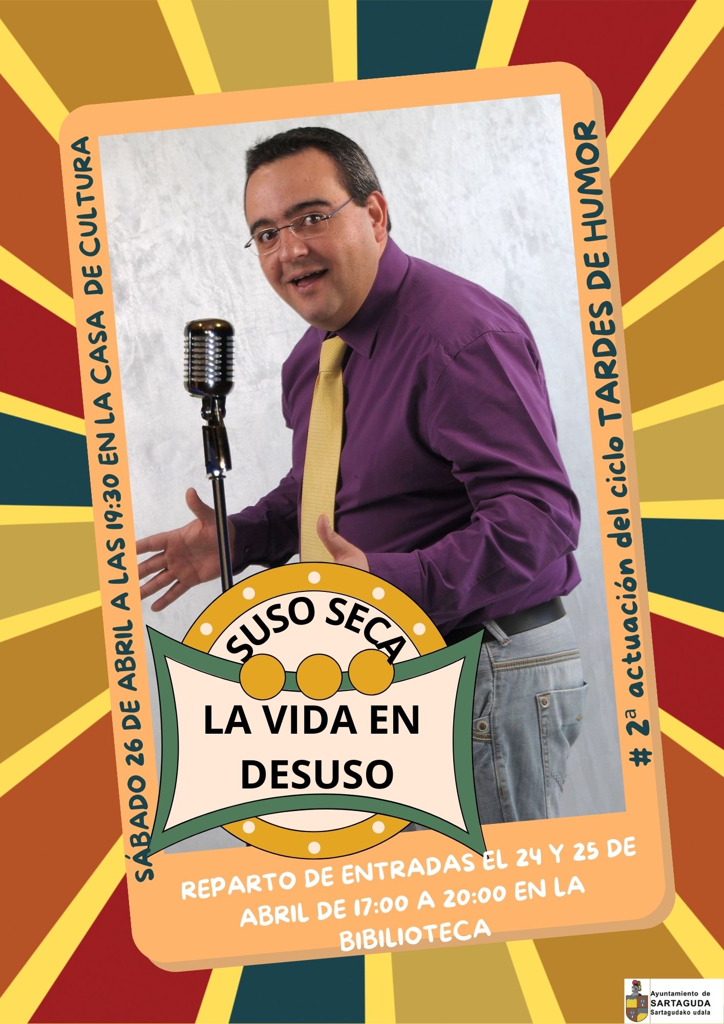 Una nueva tarde de humor con el monologuista Suso Seca llega a la Casa de Cultura de Sartaguda.