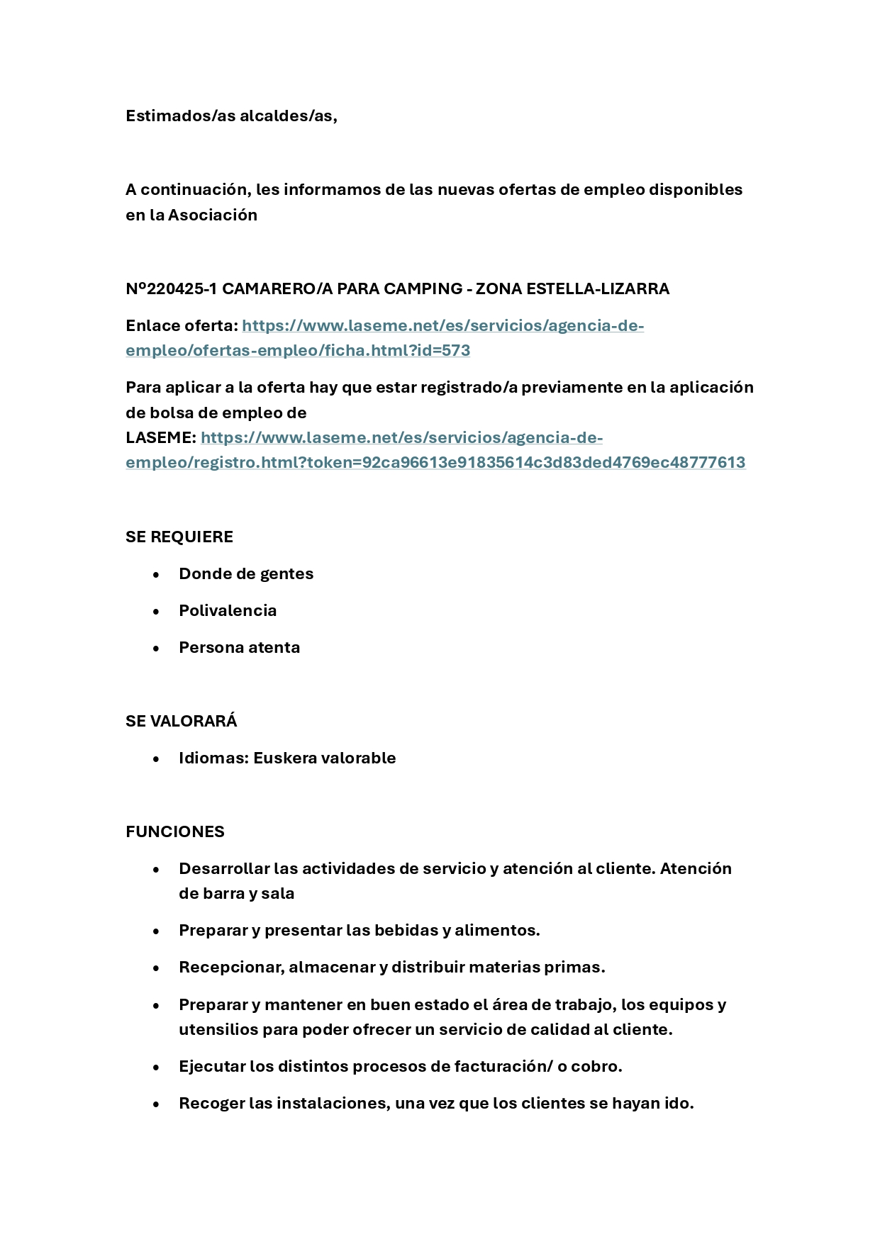 Nuevas ofertas de empleo en Sartaguda con incorporación inmediata, horarios flexibles y oportunidades de contrato estable.