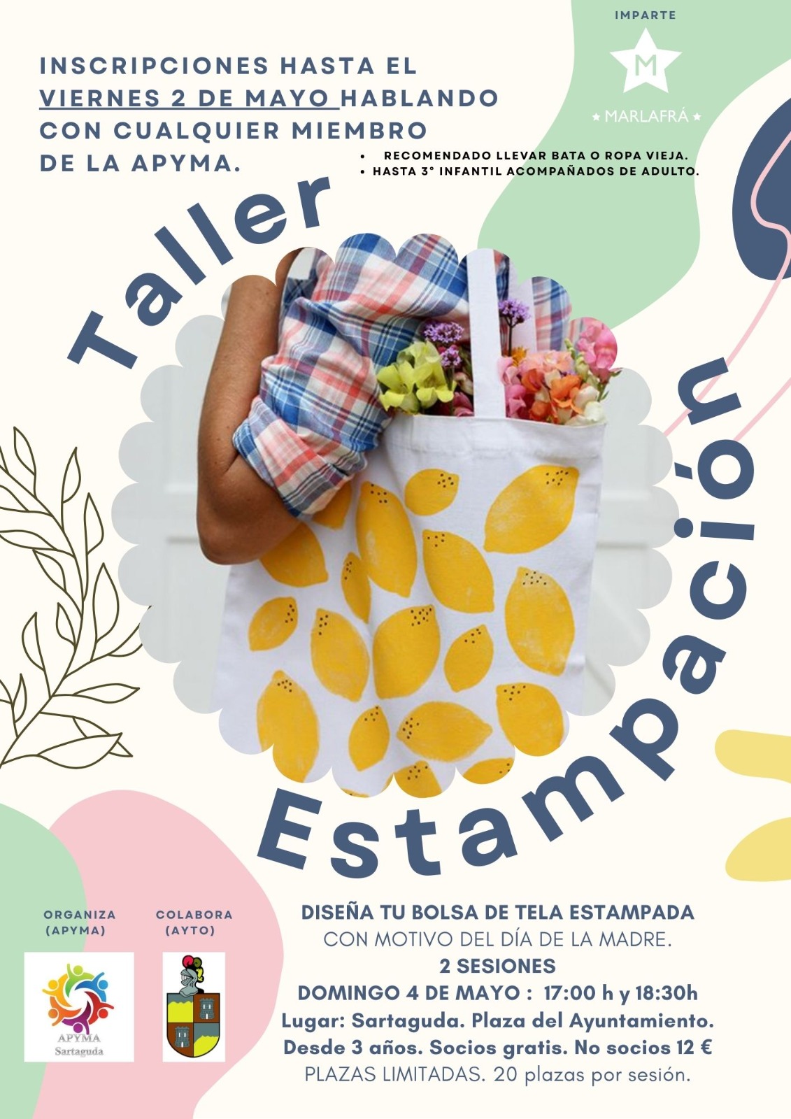 Diseña tu bolsa de tela en el Taller de Estampación de Sartaguda. Domingo 4 de mayo. ¡Inscripciones abiertas hasta el 2 de mayo!