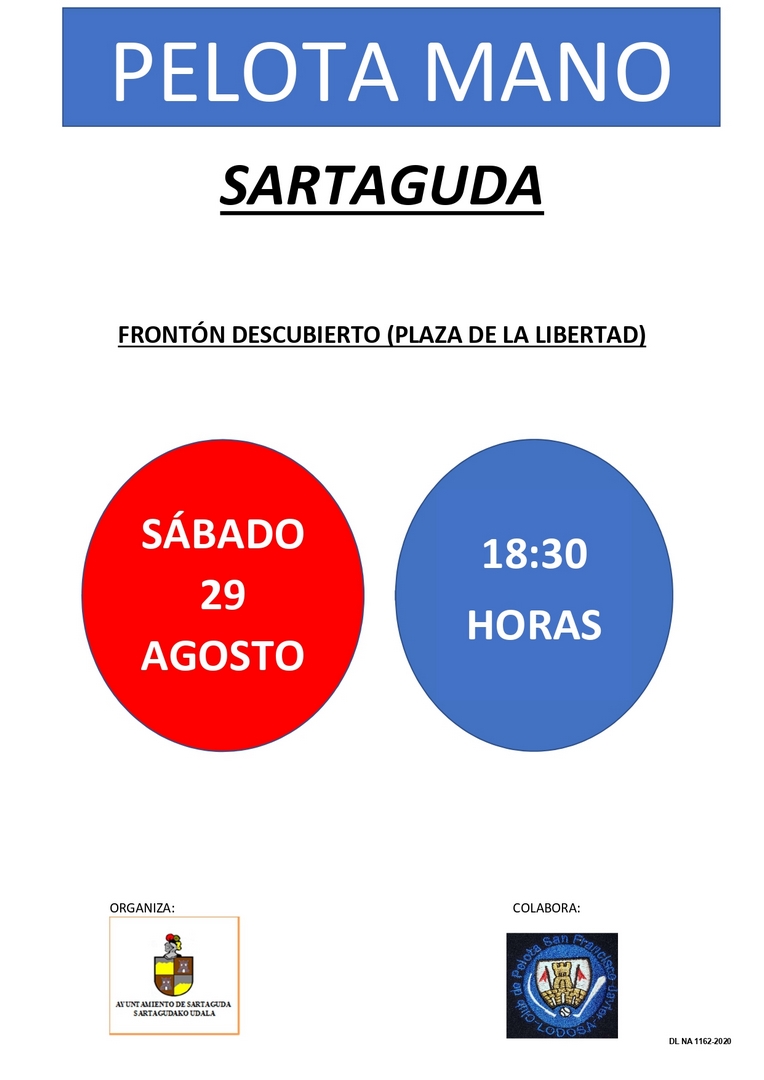 Este sábado 29 de agosto no te pierdas el partido de pelota mano en el frontón descubierto de Sartaguda.