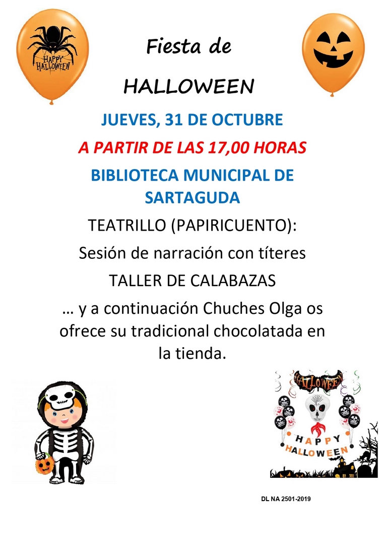 Fiesta de Halloween con sesión de narración con títeres, taller de calabazas y chocolatada.