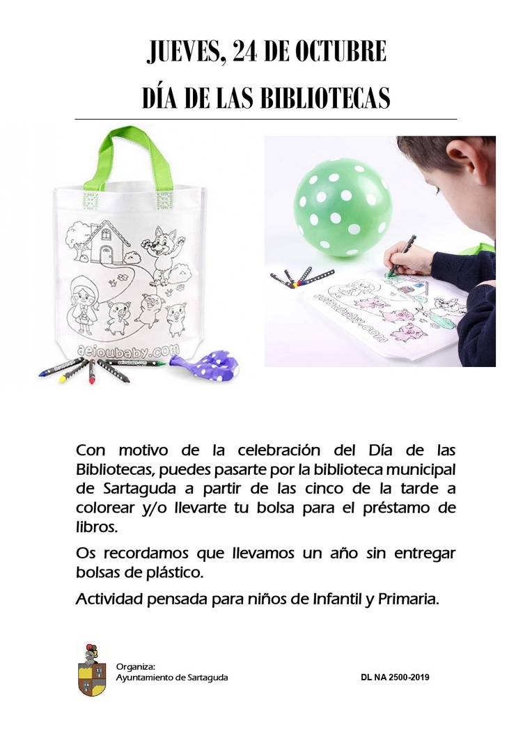 Con motivo de la celebración del Día de las Bibliotecas, puedes pasarte por la biblioteca a colorear y/o llevarte tu bolsa