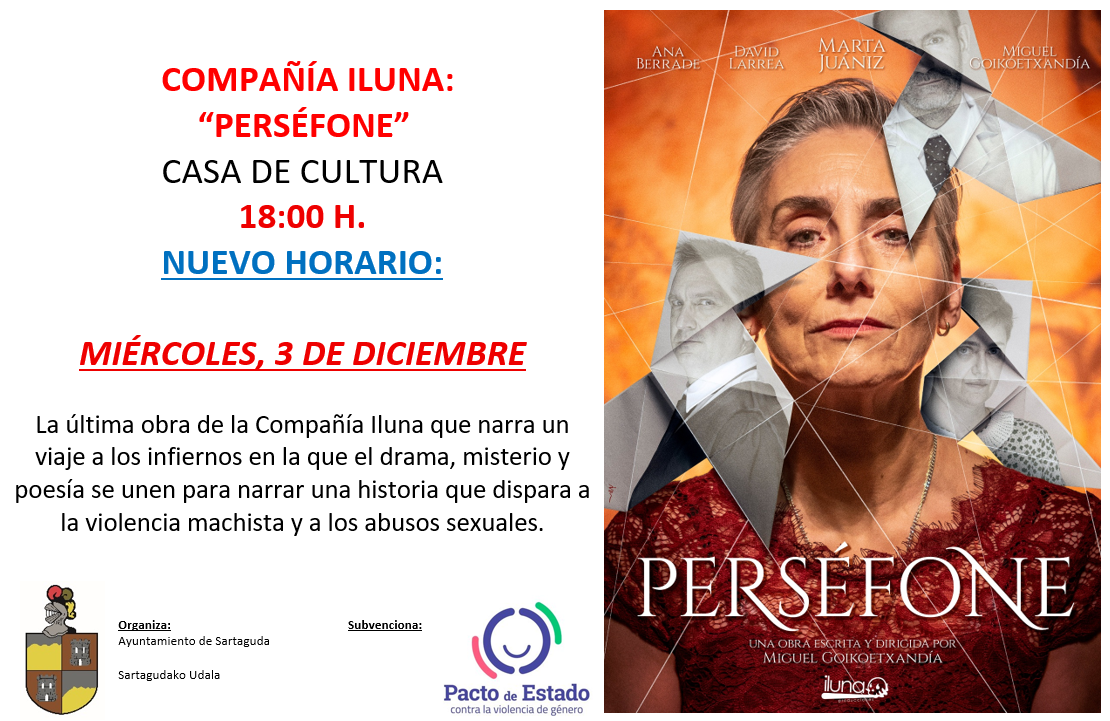 Se informa a las personas usuarias que la representación de la obra de teatro prevista para el 21 de noviembre ha sido reprogramada.