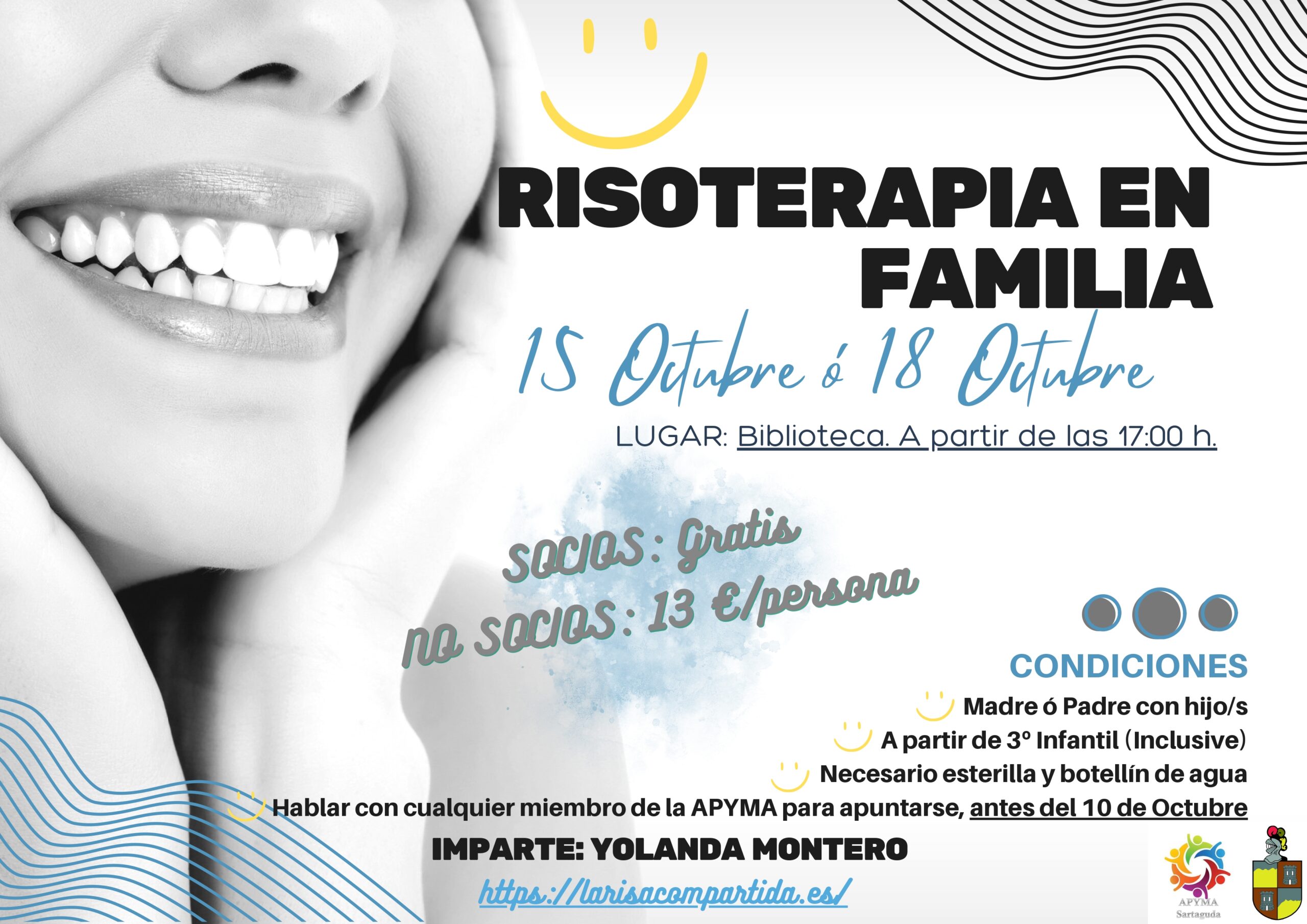 Risoterapia en Familia Del 15 al 18 de octubre en la Biblioteca, a partir de las 17:00 h. Impartido por Yolanda Montero, este taller está dirigido a madres/padres con hijos desde 3º de Infantil en adelante.