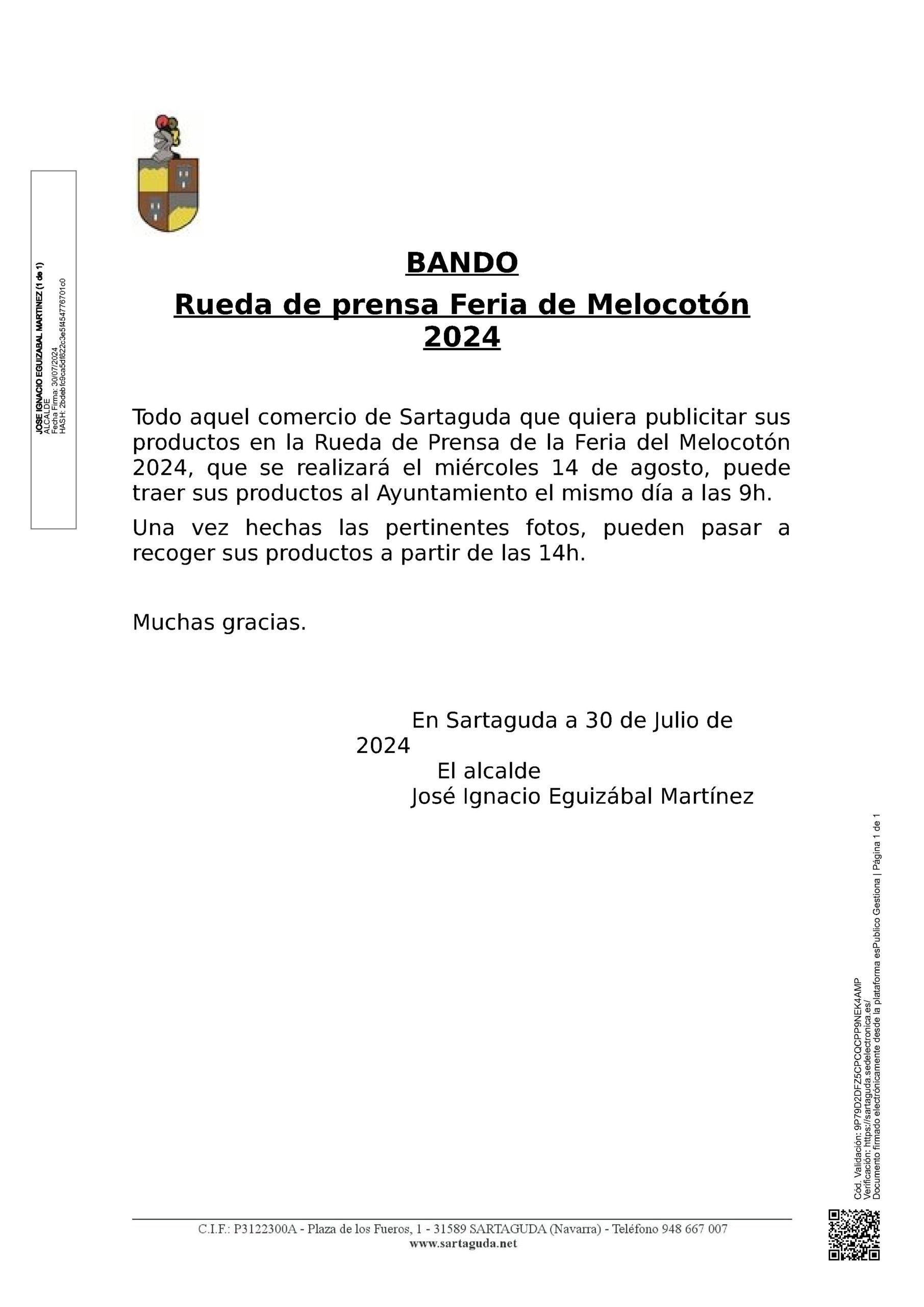 Este domingo, 18 de agosto, no te puedes perder la Feria del Melocotón en Sartaguda 2024. Una jornada repleta de actividades.